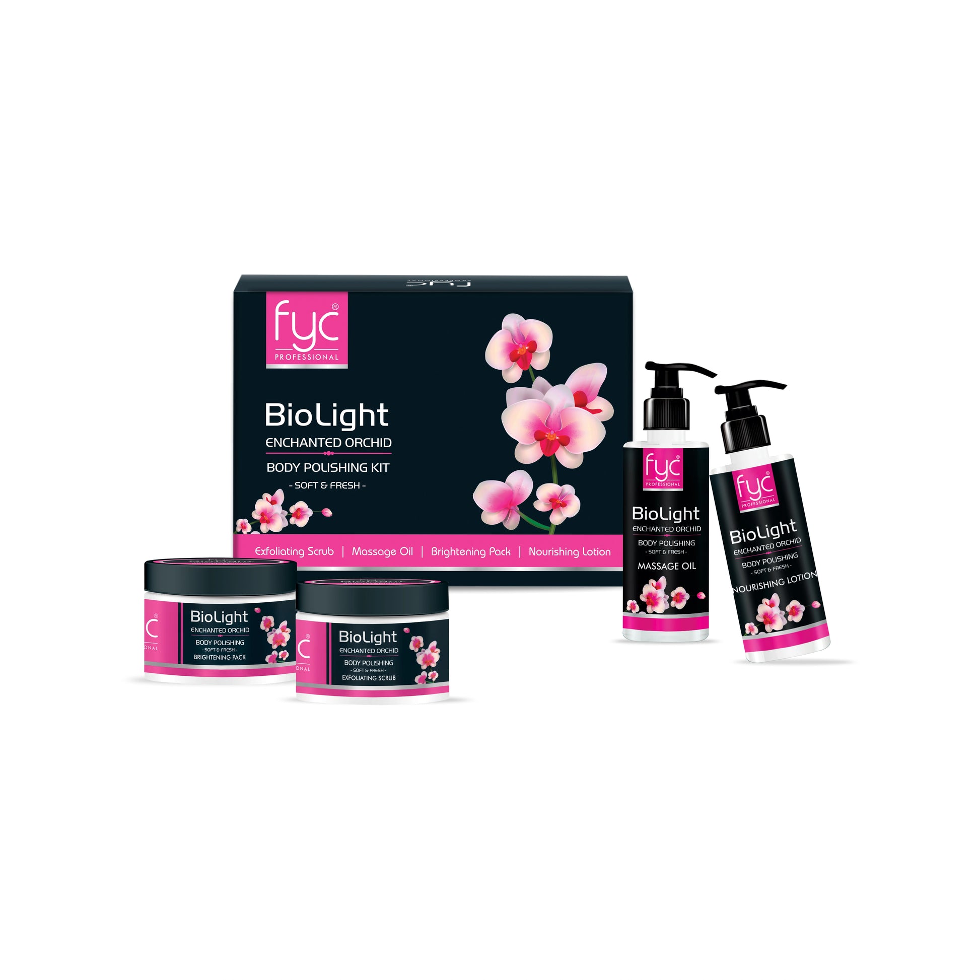 Experience luxurious skin transformation with the Biolight Enchanted Orchid Body Polishing Kit (1000g) by FYC Professional. This 4-step premium treatment is crafted to exfoliate, nourish, and restore your skin with the power of botanical actives and therapeutic oils. Enriched with ingredients like olive, fig, date seed, and illuminating minerals, this kit effectively removes dead skin cells, hydrates deeply, and improves skin elasticity and texture. It helps reduce fine lines, wrinkles, sun damage, and acne—revealing soft, smooth, and radiant skin. Ideal for all skin types, this spa-like ritual promotes new cell growth while leaving behind a lingering sense of relaxation and well-being.