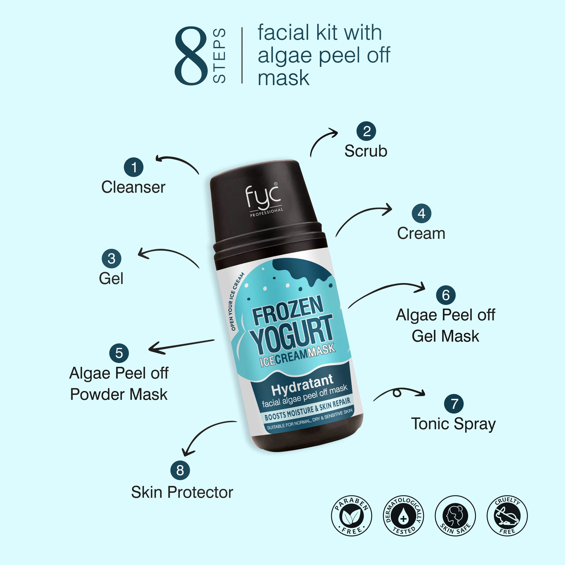 FYC Professional Frozen Yogurt Ice Cream Mask is a luxurious 8-step facial kit that blends the refreshing power of yogurt with advanced skincare science to hydrate, exfoliate, and rejuvenate. This unique treatment energises tired skin, refines texture, and tightens pores—leaving your complexion smooth, glowing, and visibly nourished. Crafted for all skin types, especially dry or dull skin, it transforms your skincare ritual into a spa-like indulgence at home.
