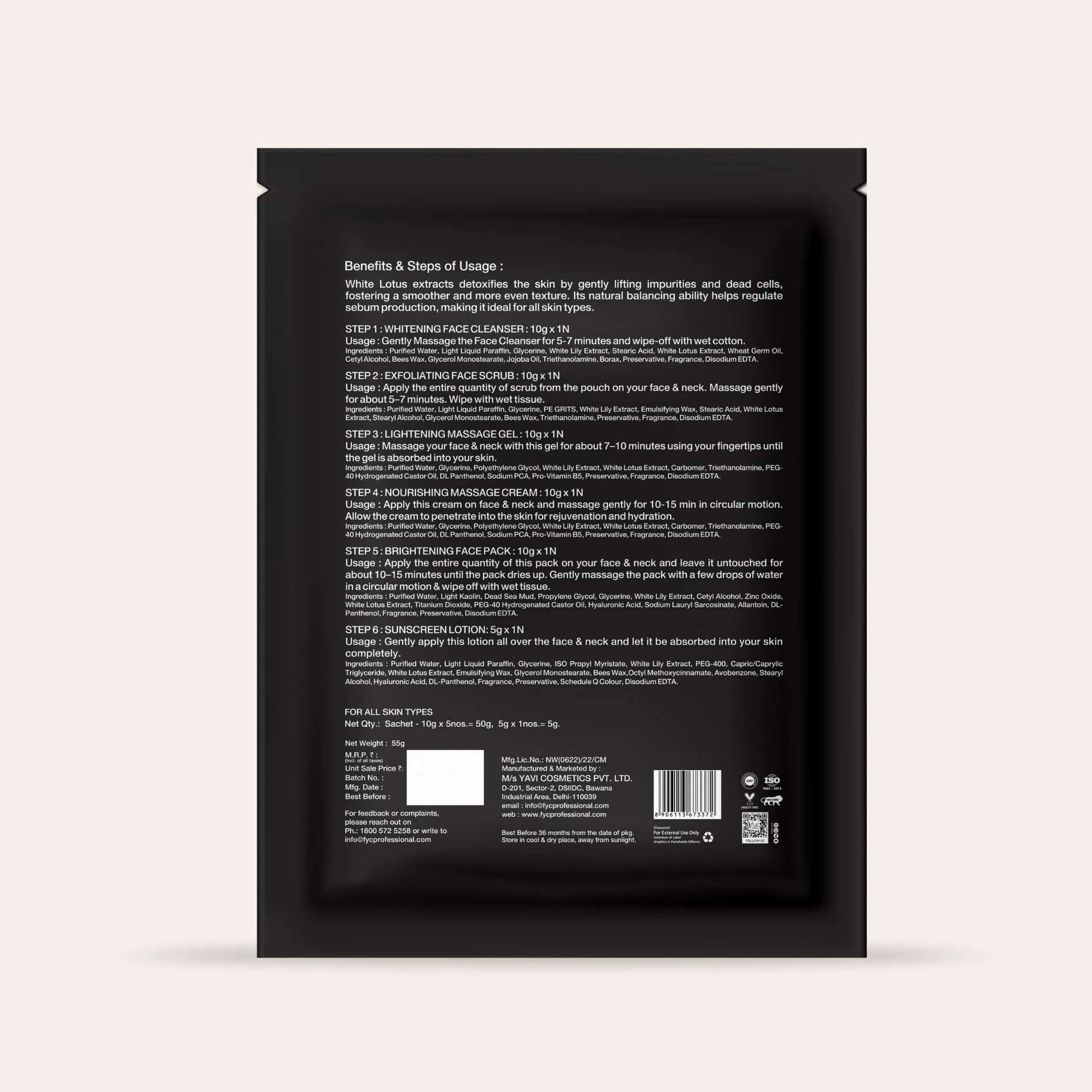 Experience luxurious skincare with the FYC Professional Water Lily 6 Steps Facial Kit, enriched with White Lily and White Lotus extracts. This professional-grade kit is designed to detoxify, balance, and revive dull, tired skin, offering a complete facial experience from deep cleansing to sun protection. Suitable for all skin types, its botanical actives help regulate sebum, exfoliate dead skin cells, and enhance your natural glow.