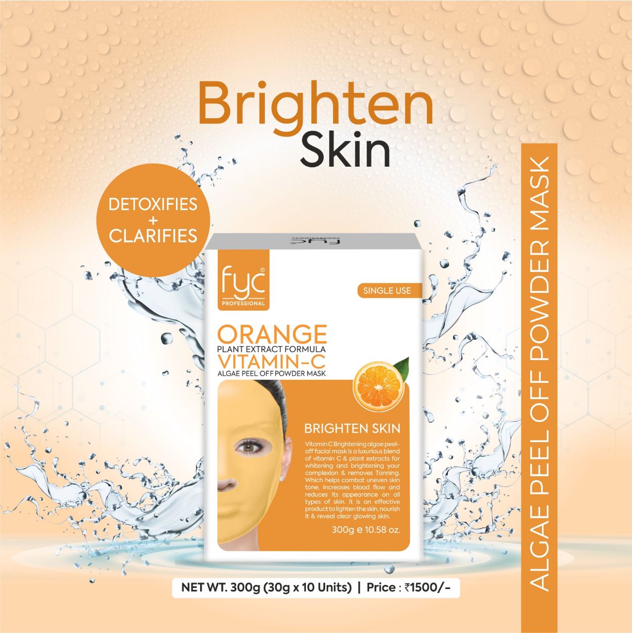 FYC Professional Orange Vitamin-C Peel Off Mask is your go-to glow treatment packed with the goodness of Vitamin C and orange extracts. This rejuvenating peel-off mask targets dullness, pigmentation, and fine lines to reveal a brighter, more youthful-looking complexion. It gently lifts away impurities while hydrating and firming the skin, leaving it refreshed, smooth, and radiant.