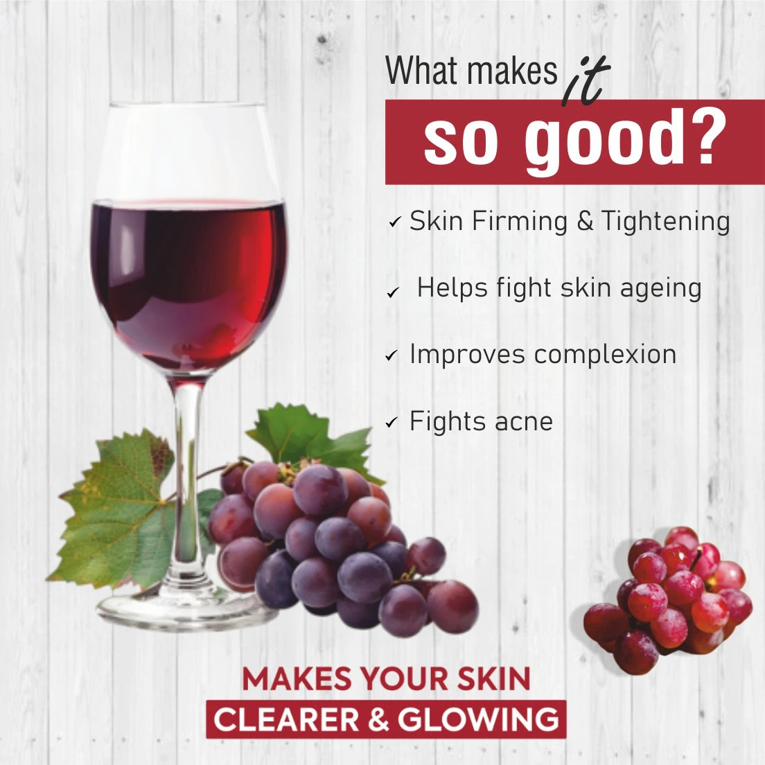 Red Wine Extract: Rich in antioxidants, helps in skin cell renewal and slows signs of aging