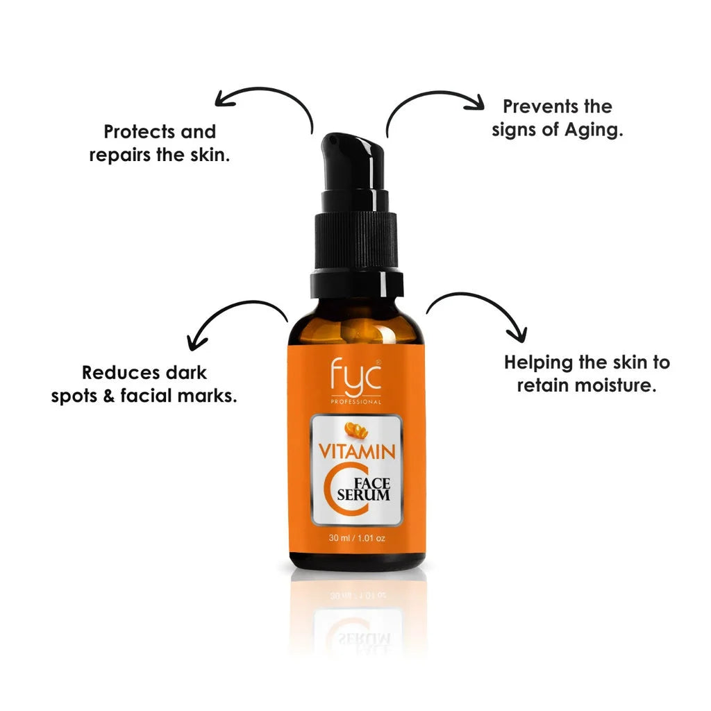 Glow Naturally, Every Day Add the FYC Professional Vitamin C Face Serum to your skincare routine for a healthy, radiant complexion that glows from within. Experience the transformative power of Vitamin C in just a few drops!